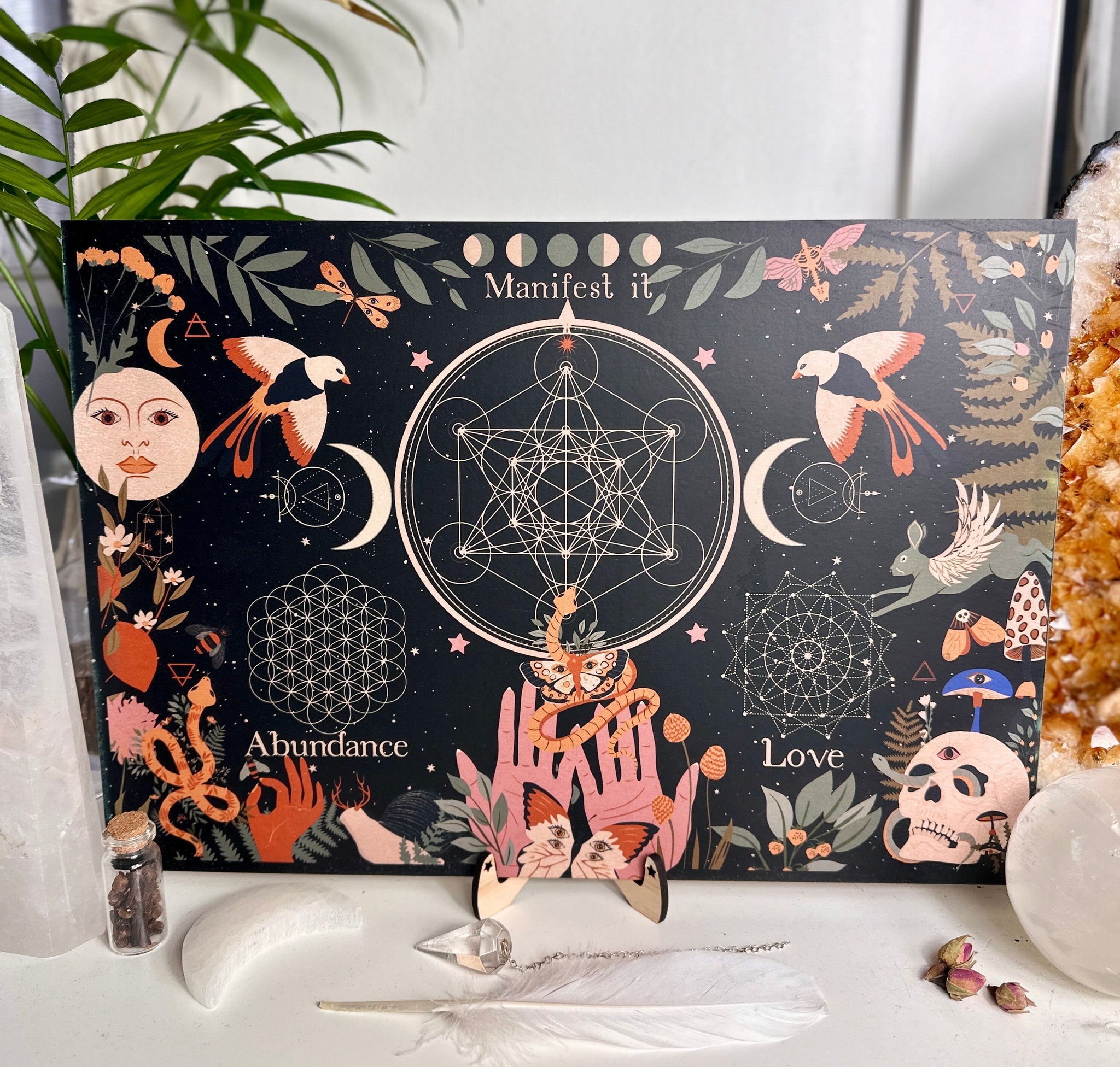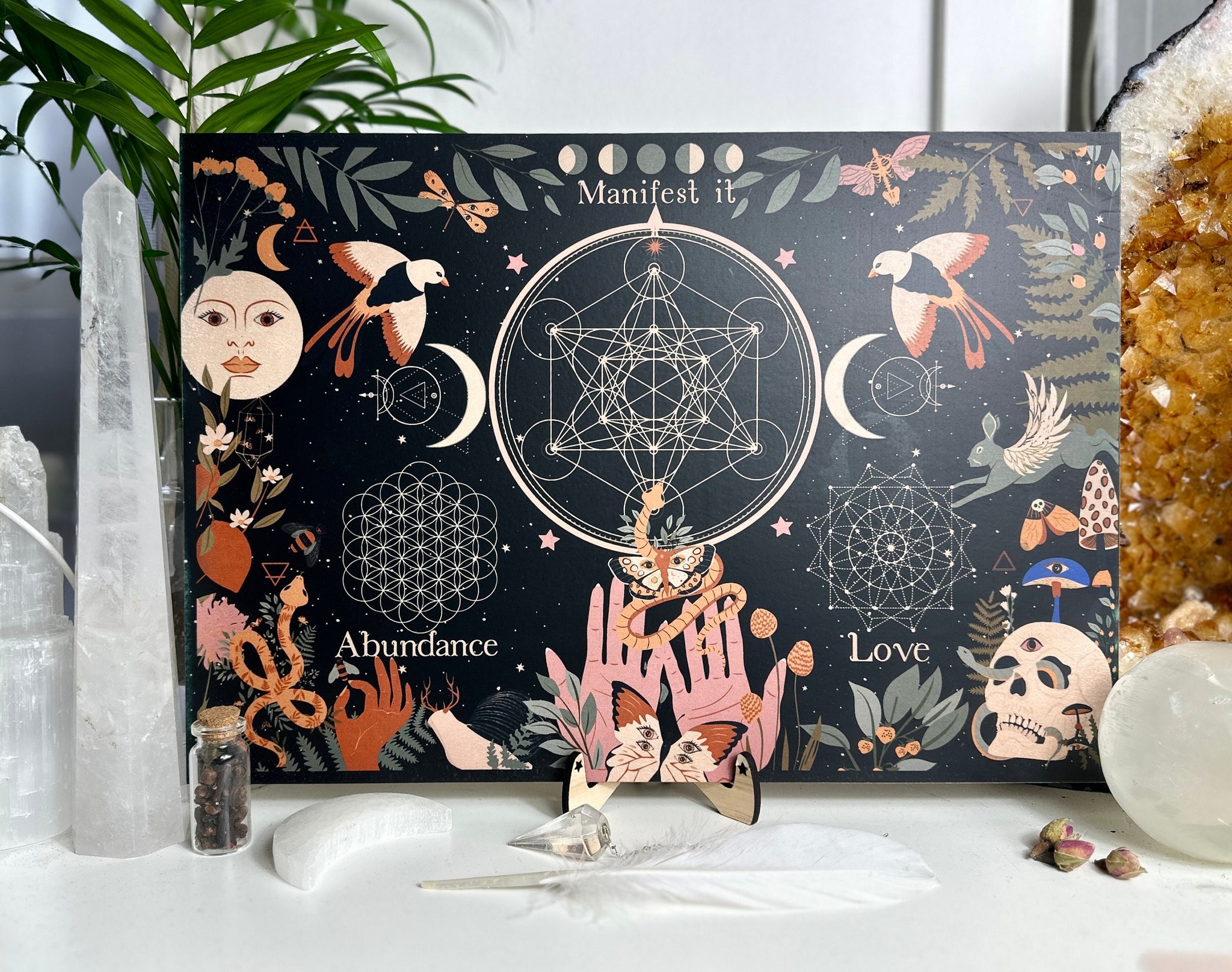 You can set this manifesting board on your sacred altar and use it as a focal point for daily meditation and intention setting. By regularly connecting with your intentions and visualising your desires, you strengthen your manifestation practice and align with the energy of your intentions.