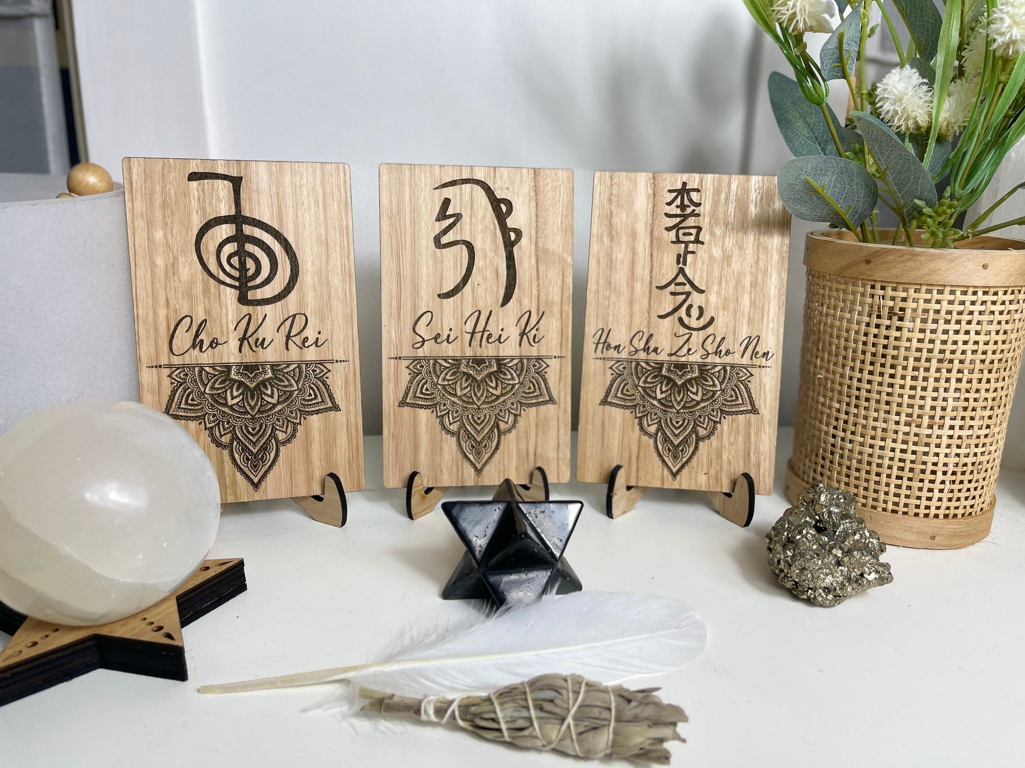 Reiki Individual symbol with stand or wall mount Cho Ku Rei, Sei Hei Kei, Hon Sha Ze Sho Nen, Dai Ko Myo, Holy Fire