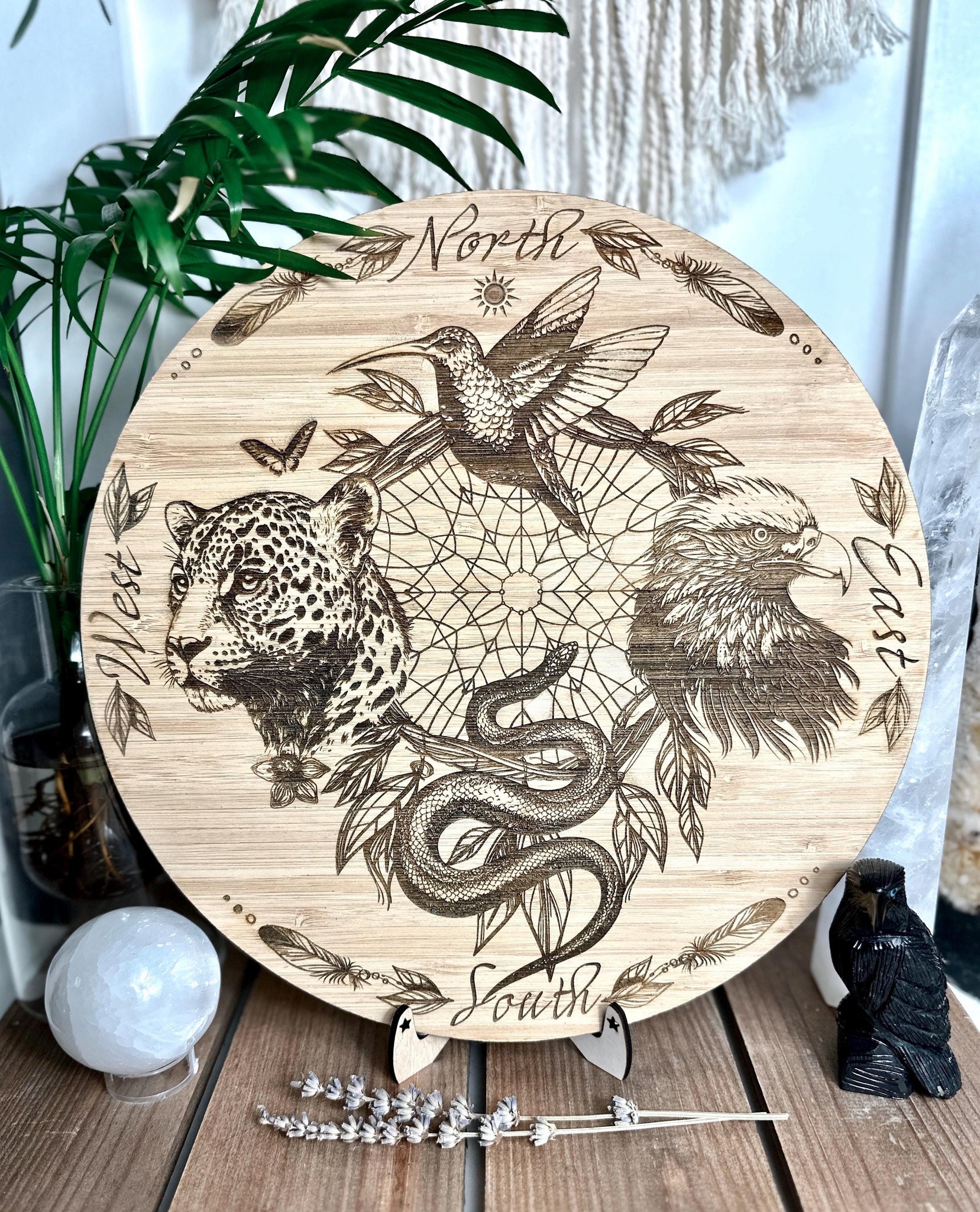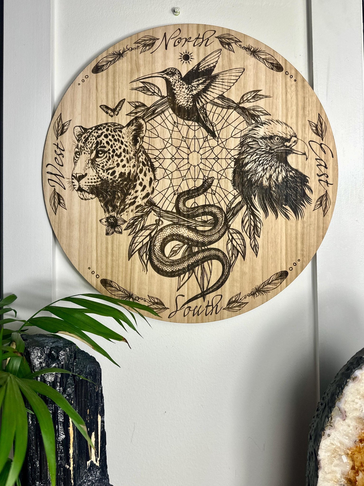 Shamanic 4 directions wheel board - representing the elements, hummingbird, eagle condor, serpent, jaguar. I originally created it for my own personal use on my sacred alter and have found it to be amazing for many things including ceremonies.